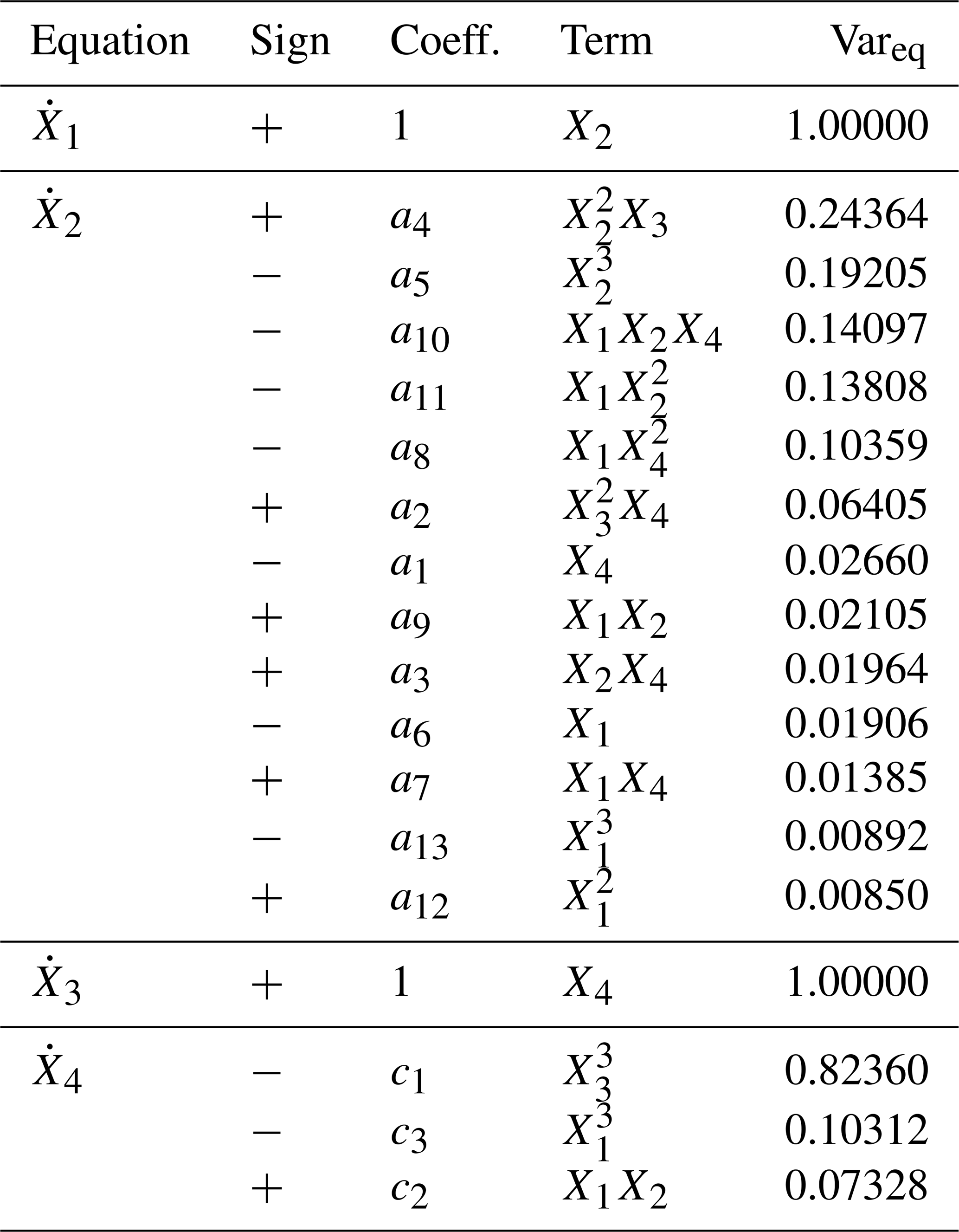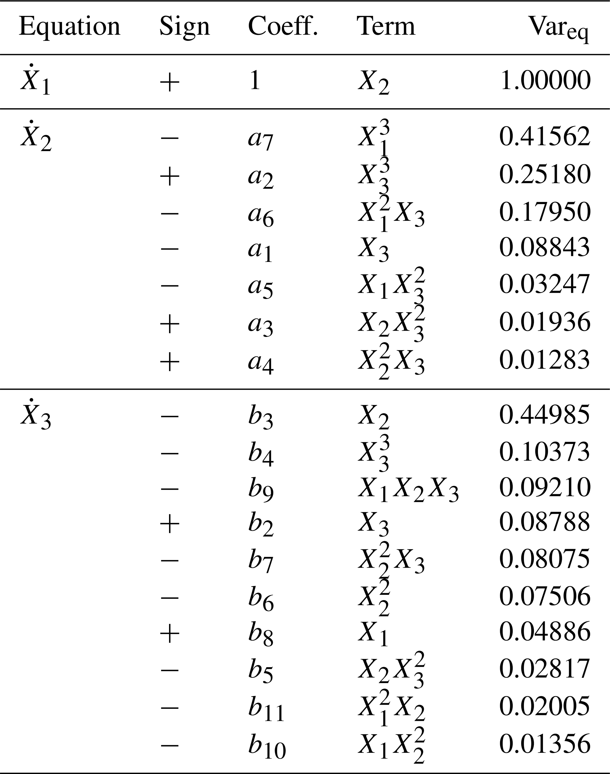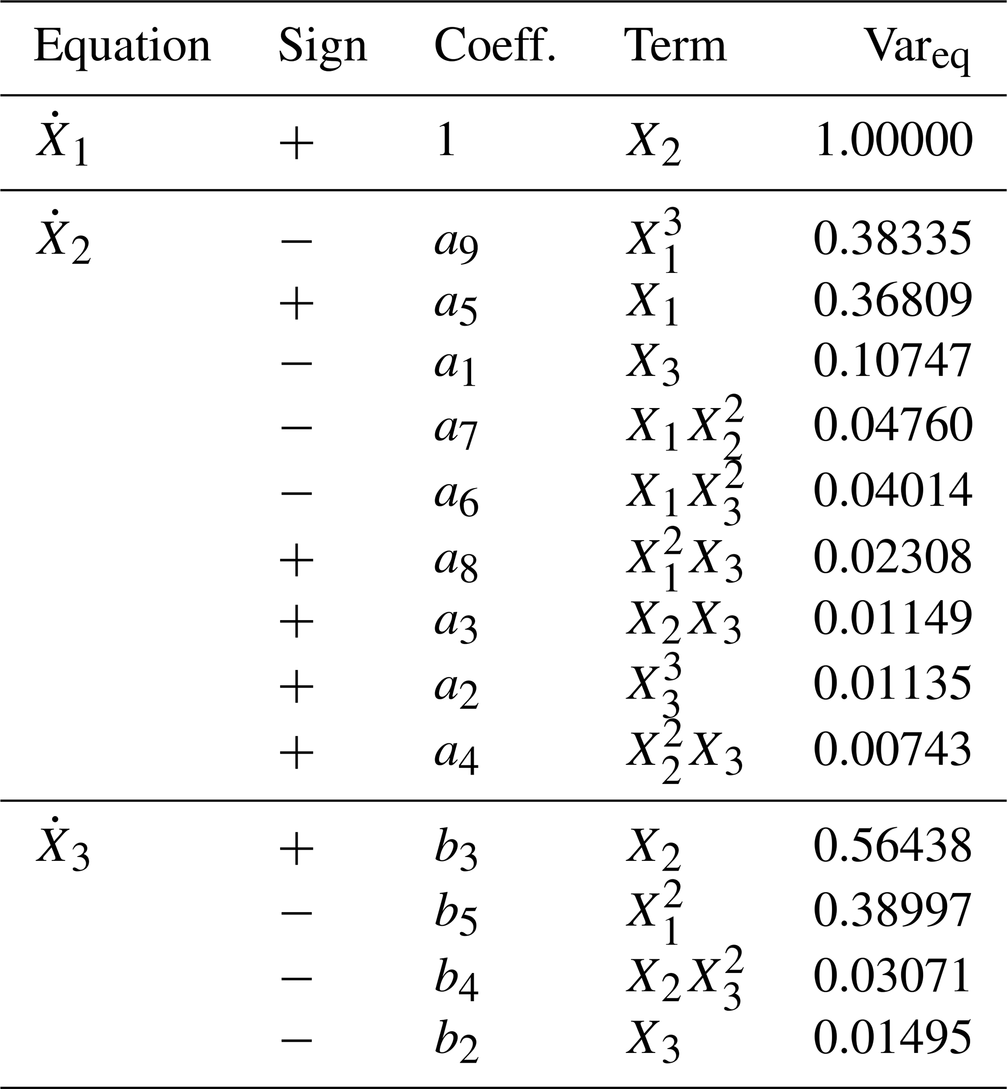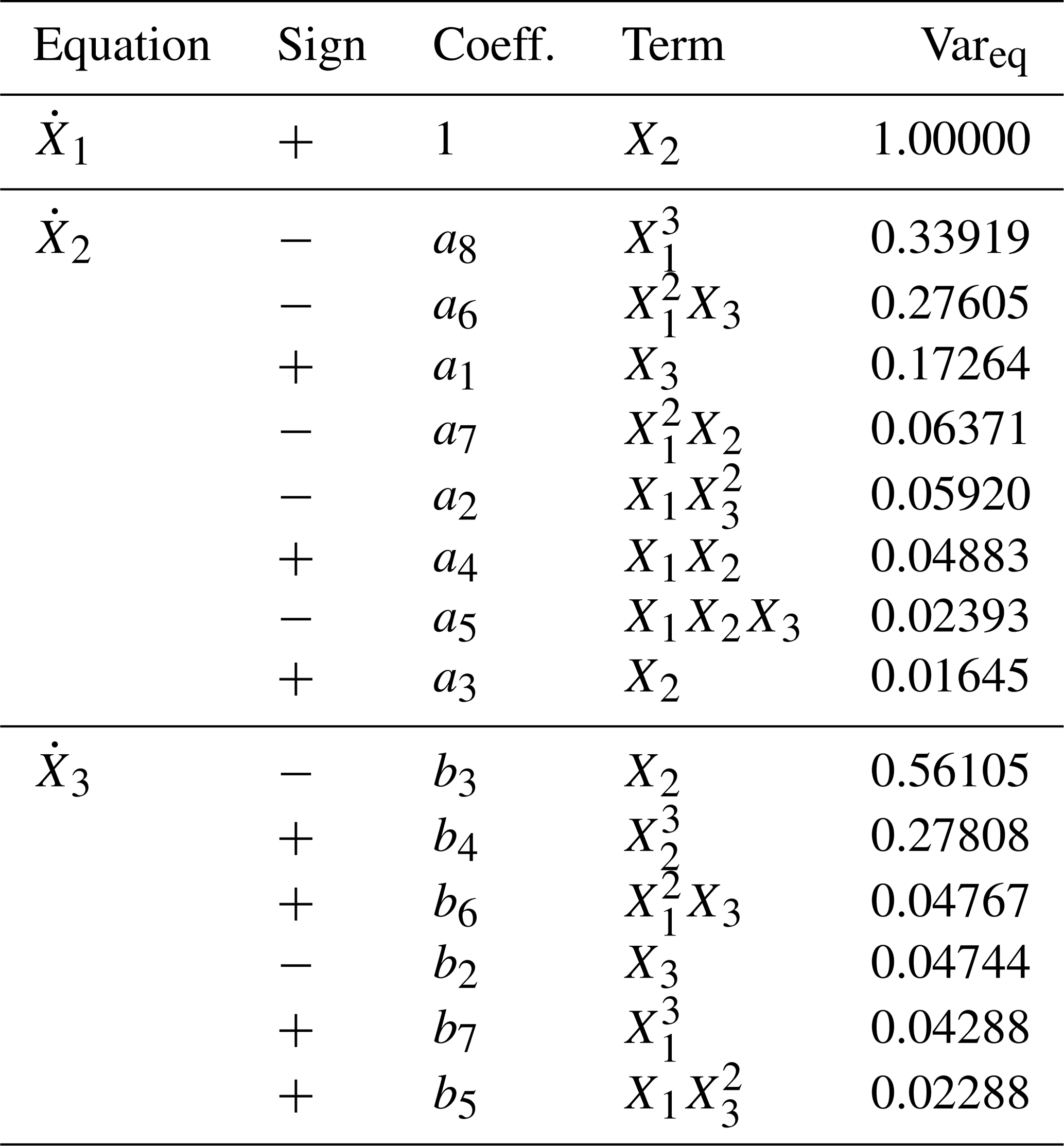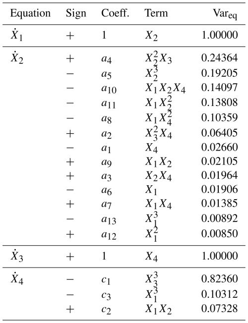 3.2 Reconstructed equations, model structures and physical interpretation of dominant terms